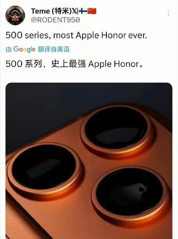 外观这块,博主@Teme 近日指出,荣耀500系列造型可能会对标苹果手机,走那种“极简中带点高定”的路子。