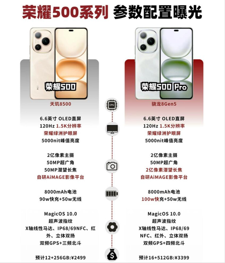 这意味着,荣耀500系列两款新机性能都会很有看头。
