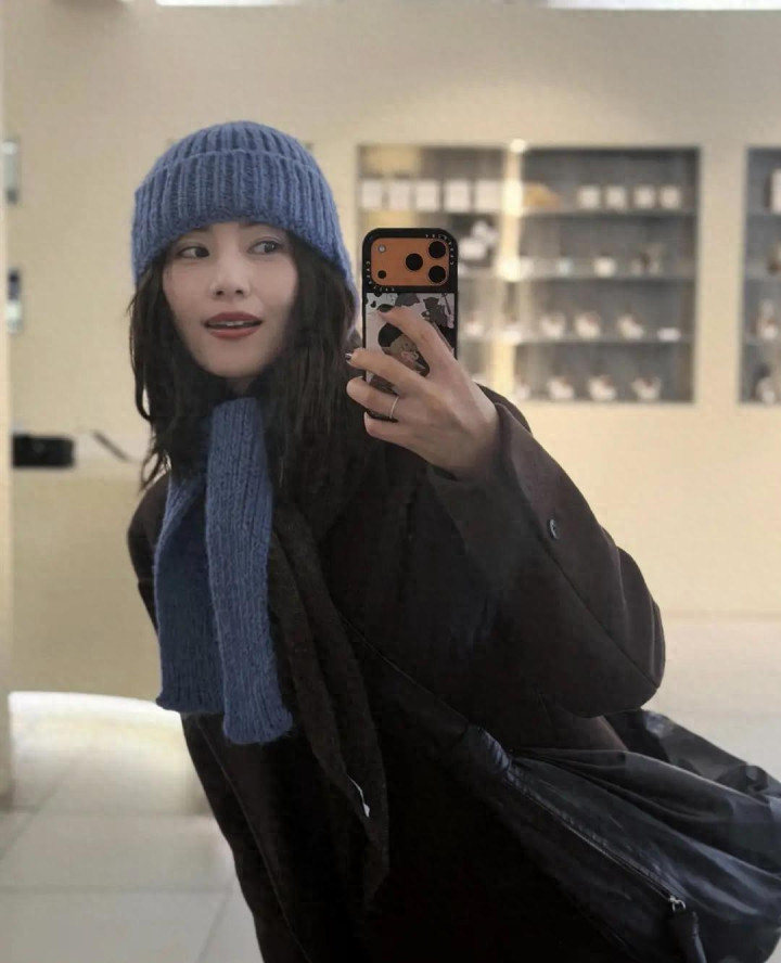 免费配资炒股入配资平台高圆圆冬日逛街随拍, 大衣搭针织帽柔顺发型尽显优雅气质与美貌